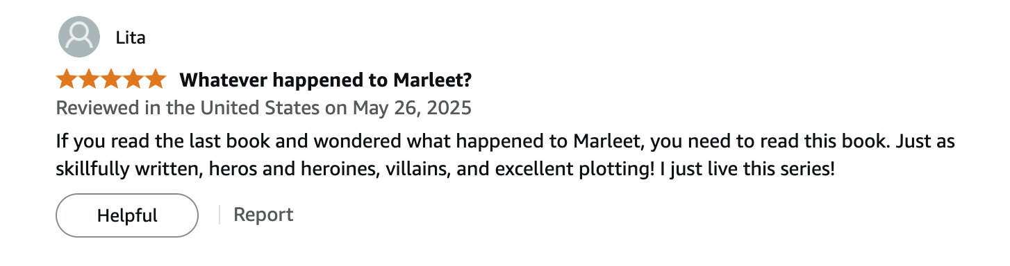 Thanks, Lita for the great reviews and I hope you love the rest of the series!